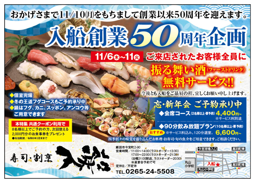 ※ご予約の際に月刊いいだのクーポンを使用する旨をお店にお伝えください。
